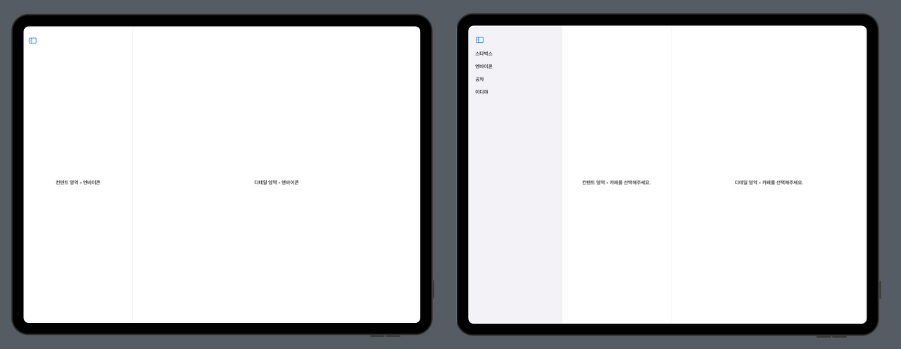 - (수평 관계는 TabView로 사용)